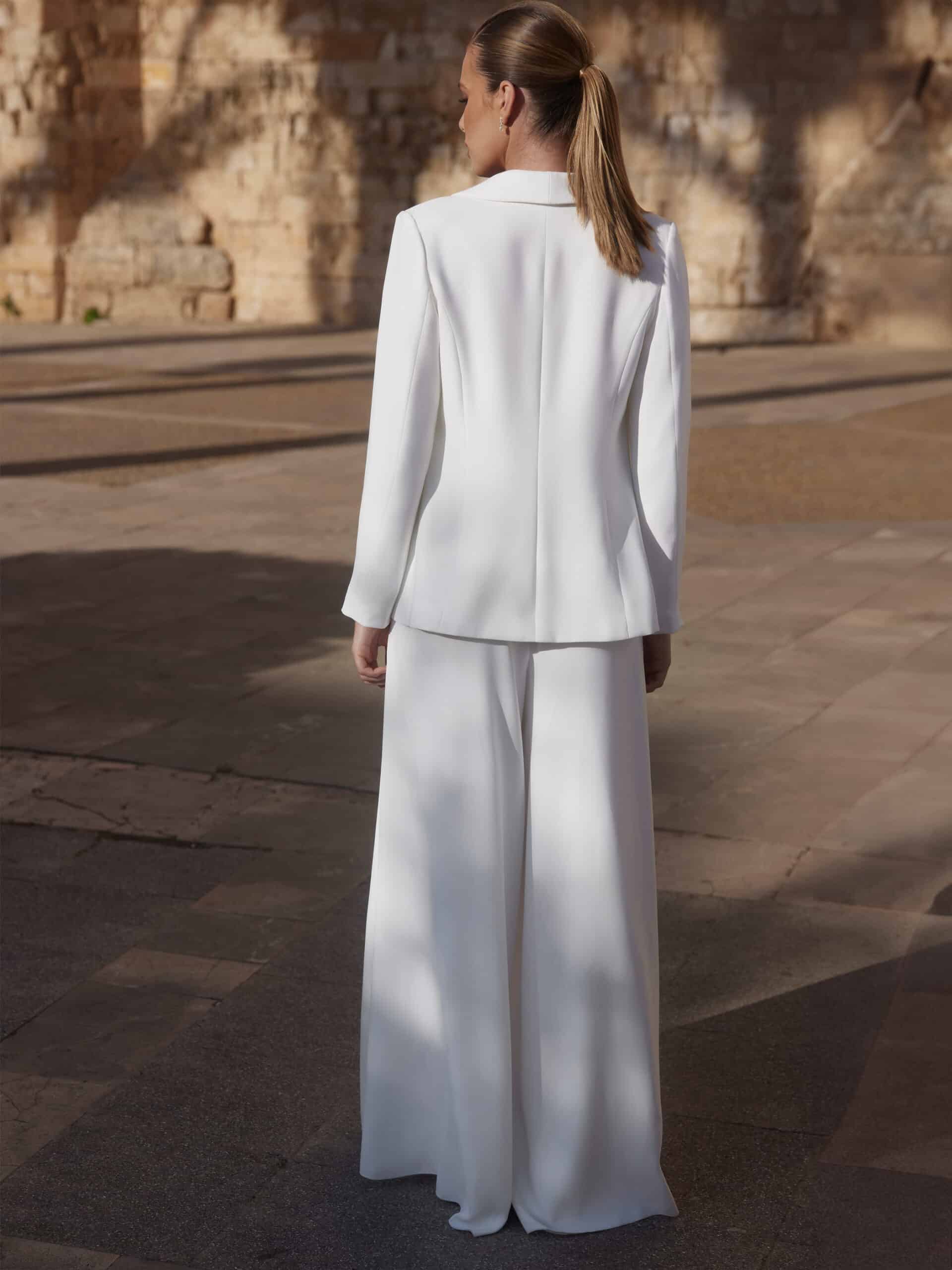 Die Brauthose Modell Ezra von Bianco Evento ist die perfekte Wahl für moderne Bräute, die sich am Hochzeitstag bewusst für einen eleganten und zugleich entspannten Look entscheiden möchten. Der fließende, weite Schnitt sorgt für eine wunderschöne Silhouette und schenkt die maximale Bewegungsfreiheit vom ersten Schritt bis zur letzten Tanzrunde.